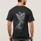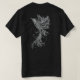 a decorative white lineart design of a phoenix, small in front, big in the back on a T-Shirt