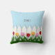 This charming design features a white picket fence and a row of red, pink, and yellow tulips. Use the space in the blue sky to write a name, inspirational words, birthday or a personal message to someone special.