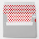 Stylish light gray Christmas card envelope, with graphics of a white pine branch with red Christmas ornaments, along the front top. Personalize the red custom return address, on the back flap, to suit your needs. Matching holiday photo greeting cards are available.