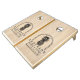 Natural Wood Cornhole Set, Yellow and Purple bags