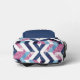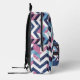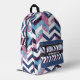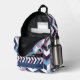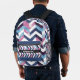 This backpack has a chevy-style marble-looking pattern of white, pink and blue shades. You can customize the text and it is great for varsity sports teams, social groups, or company divisions.