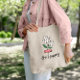 The minute I spotted this item I knew I HAD to order these for my daughter's wedding for the Hotel Goodie Bags since the wedding was held at a vineyard. The quality is great and they were a little bigger than I expected but worked out and will be useful to the recipients to tote their books, papers, lunch etc for future use. The picture shows what we put inside to welcome our hotel guests. I was very satisfied with the printing on the tote and I liked I was able to choose the font and size for the bag.