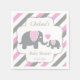 White, Pink & Gray Stripe Elephants Baby Shower Napkins