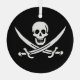 White, Pirate Flag Calico Jack, Skull & Cutlass Glass Ornament