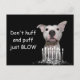 White pitbull terrier with a cake and lit candles apparently hungry cause he wants the recipient to just blow those darn candles out cute and fun dog lovers Birthday postcard