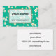 This design features white plumeria flowers cluster on mint green background seamless repeat pattern with custom name, company name, phone address, email and website link.