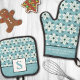 Add a touch of elegance to your holiday kitchen with this beautiful oven mitt and pot holder set featuring a white poinsettia flower pattern with green accents on a serene blue background. Perfect for bringing festive charm to your culinary space, this set is both stylish and functional. Customize it with your monogram for a unique addition to your kitchen decor or as a thoughtful Christmas gift. This set provides essential protection while cooking and baking, making it a delightful and practical addition to your seasonal kitchen accessories.