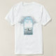 Storm clouds surround a stone window frame containing the photo of a loan polar bear on a solitary ice float. The bear gazes into the distance as though pondering his fate. An antique map of the North Pole looms above the clouds. The words ACT NOW are “embossed” in bold condensed type in the water below the bear. This design prints best on white shirts.