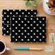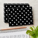 White polka dots medium on black envelope