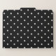 Mini white polka dots form a classic geometric pattern on a black background on the inside and outside of each folder.
