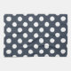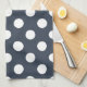 White polka dots on blue-gray kitchen towel