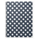 White polka dots on blue-gray notebook