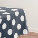 White polka dots on blue-gray tablecloth