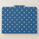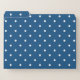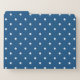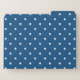 Mini white polka dots form a classic geometric pattern on a blue background on the inside and outside of each folder.