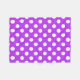 White polka dots on bright purple fleece blanket