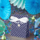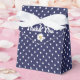 white polka dots on navy blue favor boxes