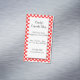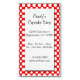 A custom magnetic business card template with script and friendly serif letters for your name, address, days and hours and more info on a clean white background with a drop shadow against a white polka dot pattern on red. Customize it to change fonts, add your own logo and more, even save your design for later.
