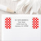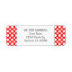 A custom return address label with simple white polka-dots on red reading "My New Address" in simple block letters with three lines for your address. Customize it to change fonts, background colors, label size and more, even save your design for later.
