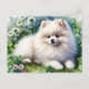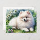 White Pomeranian Dog Watercolor Clover Field Postcard