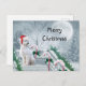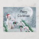 White Poodle outside in a snowy candy cane and decorations setting wearing a red Santa hat dog lovers Christmas holiday postcard