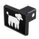 Protect your car or truck's trailer hitch from damage and debris and make a statement with this cool Poodle trailer hitch cover. White Poodle dog design on black. Visit Jenn’s Doodle World for even more dog breed silhouette trailer hitch covers and Poodle lover's gifts.