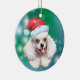 White Poodle Dog Red Santa Hat Christmas Ceramic Ornament