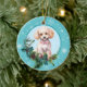 White Poodle Evergreen Blue Snowflake Border Ceramic Ornament