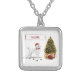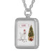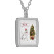 White Poodle Funny Christmas Dog with Tree Silver Plated Necklace