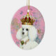 Beautiful white poodle wearing a golden crown. In the background are hummingbirds and scrolls. Pretty pastel design by Greer. If you need help with personalizing contact Greer at greerdesign@aol.