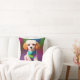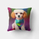 White Poodle with Cream Ears on Rainbow Sparkle Throw Pillow