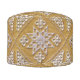 White embroidery on linen custom round pouf featuring not real but a PRINTED image of handmade cutwork Hardanger or Hardangersøm whitework embroidery on beige linen.