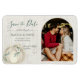 White Pumpkin & Lights Rustic photo, wedding save the date magnet. Fall in love, elegant white pumpkin with golden botanical vines of blue green foliage and string lights autumn boho chic wedding invitation. Rustic white washed barn wood look save the date with elegant hand script style fonts.