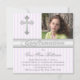 White Purple Stripes Confirmation Photo Invitation