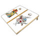 Natural Wood Cornhole Set, Yellow and Purple bags