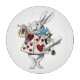 This is the classic character, the White Rabbit, in his suit of hearts as the herald of the Court of Hearts. From the orignal alice's adventures in Wonderland illustrated by John Tenniel.