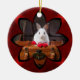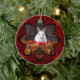 First Christmas ornament for your cute adorable white rabbit. Name Year and First Christmas appear on one side, and the other has a photo of a white rabbit perched on an antique wooden trunk. In true holiday spirit, he wears red socks.