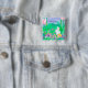 A pretty button pin to wear at Easter featuring a white rabbit tucked in behind soft pink tulips in a patch of purple crocus flowers and decorated eggs illustrated with watercolor. Great for customer gifts or a button collection!