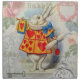The Classic White Rabbit from Alice in Wonderland - Alice's Adventures in Wonderland features the white rabbit. This classic image of the white rabbit is from the original book, showing the rabbit blowing a horn, wearing a uniform of red hearts. The white rabbit is seen throughout the Alice in Wonderland story, from the rabbit hole, to the Mad Tea Party with the Mad Hatter. The alice in wonderland collage is a beautiful image for party invitations and gifts. Written by Lewis Caroll in 1865, Alice falls down the rabbit hole and is involved in a wonderland of fantasy.