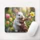 White Rabbit Licking a Chocolate Easter Bunny Mouse Pad