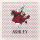 Vintage White Rabbit illustration from Alice in Wonderland decked out in red tinted Queen of Hearts garb with customizable text on gray and red hearts pattern background