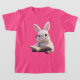 This adorable kids' T-shirt features a charming illustration of a white rabbit immersed in reading a book. Perfect for young book lovers and animal enthusiasts, this comfy and durable T-shirt is great for everyday wear or school activities.