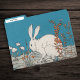 This set of three file folders are blue with a white rabbit sitting on a gray ground among pretty white and orange flowers.