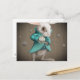 white rabbit with clock postcard