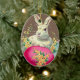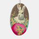 WHITE RABBIT WITH EASTER EGG AND SPRING FLOWERS CERAMIC ORNAMENT
