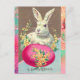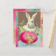 WHITE RABBIT WITH EASTER EGG AND SPRING FLOWERS HOLIDAY POSTCARD