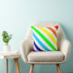 The pillow front has diagonal rainbow and white stripes and the back is the same pattern flipped.