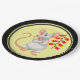 Chinese New Year plates for the year of the white rat with a cute white rat and firecrackers, yellow background, and black border.
