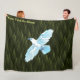 A white silhouette of a raven (Corvus corax) in flight superimposed on a green-toned fractal background closely resembling a conifer forest. Add your own text.