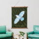 A white silhouette of a raven (Corvus corax) in flight superimposed on a green-toned fractal background closely resembling a conifer forest. Add your own text.