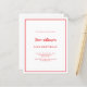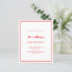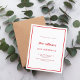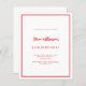 A modern, elegant and invitation. A white background decorated with a red frame. Personalize and add a name and details. Red text.